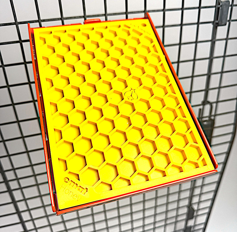 After many nights thinking of what we needed my light bulb finally went off and I knew we needed a holder of some sort that can be attached to a crate and to hold the licking mats up off the floor. We needed the holder to attach in a location that makes it easy to retrieve the mat.